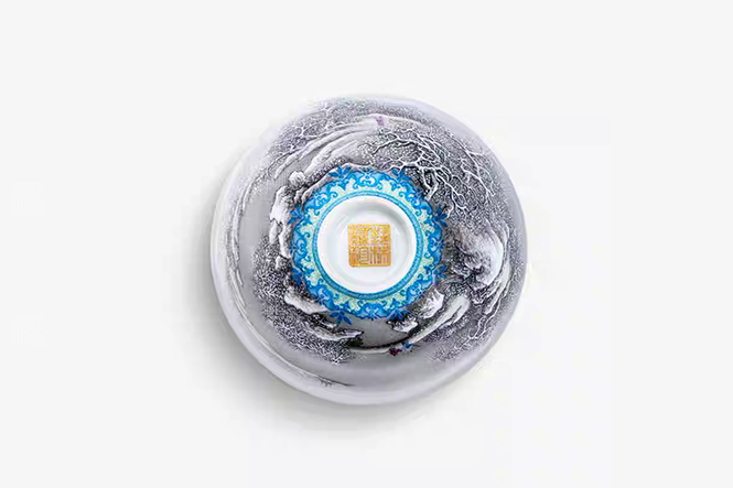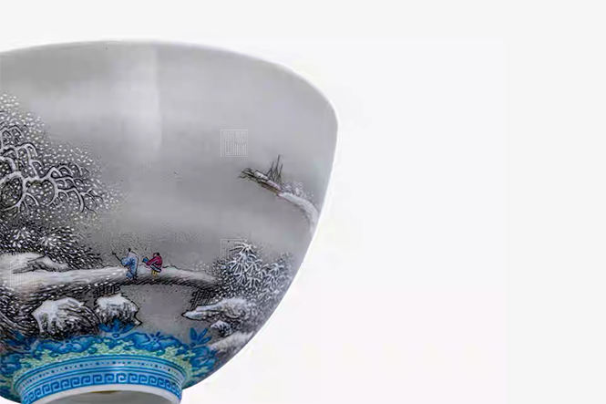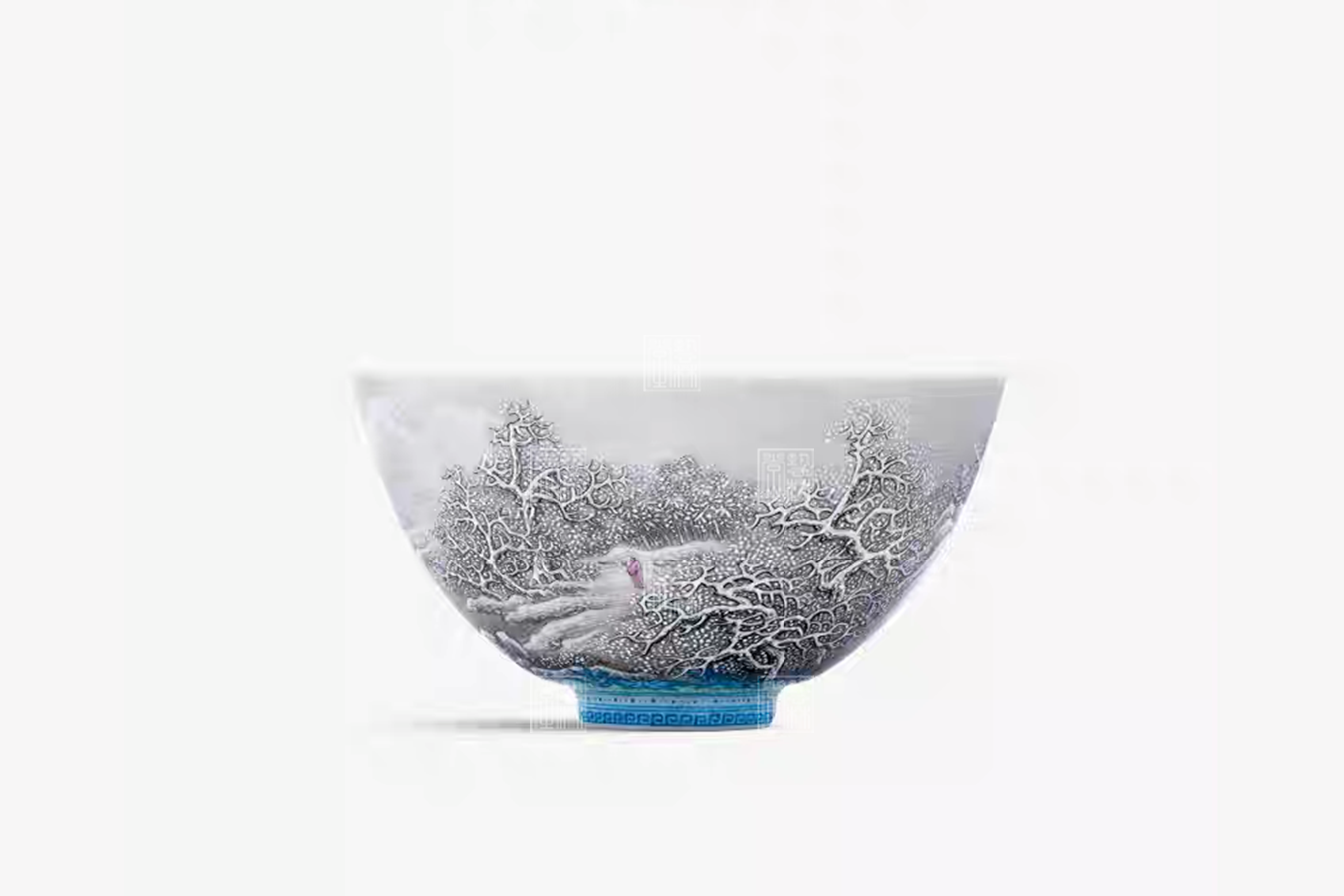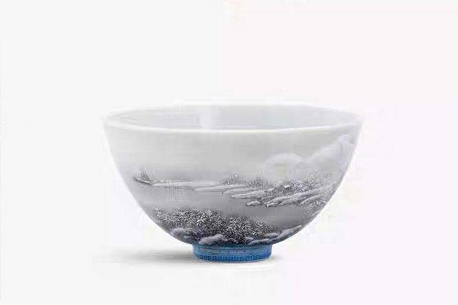 艺林藏珍珐琅料边粉墨彩山水圆心杯