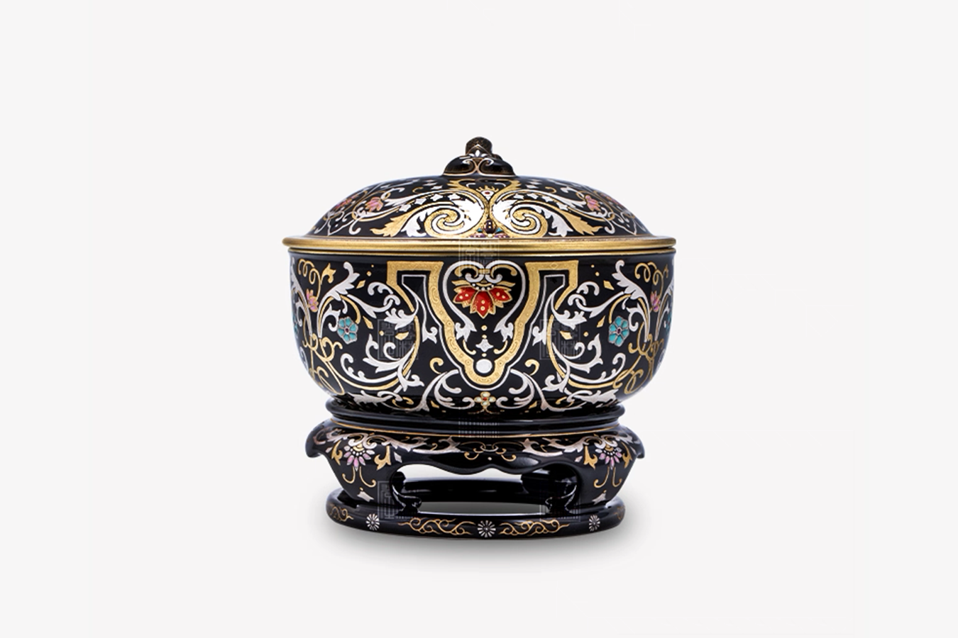艺林藏珍仿漆器错金银莲心不染高足盖盅