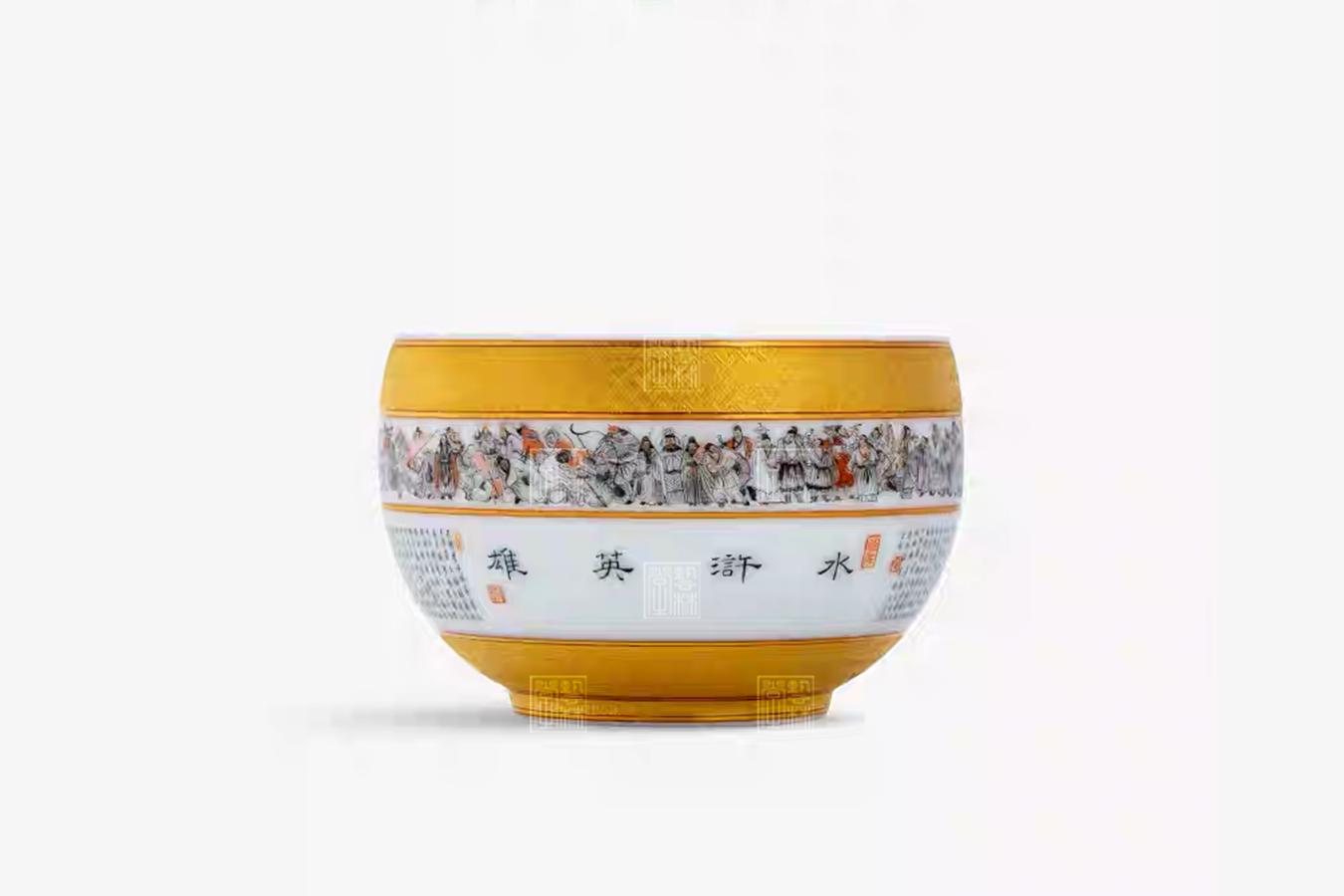 艺林藏珍墨彩描金水浒传诗文罗汉杯