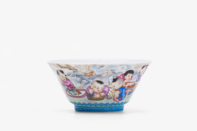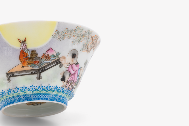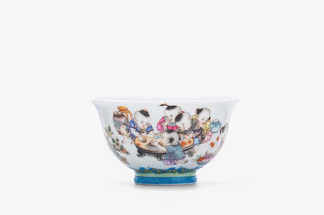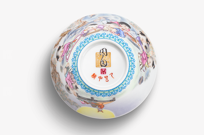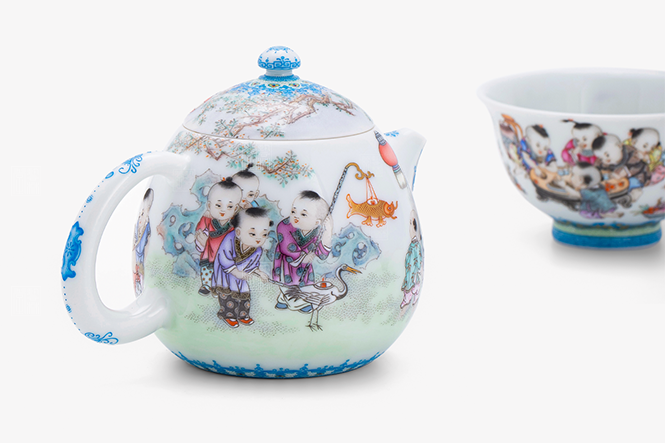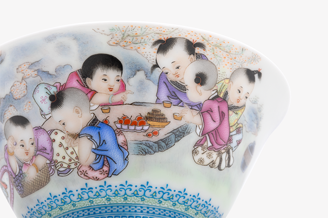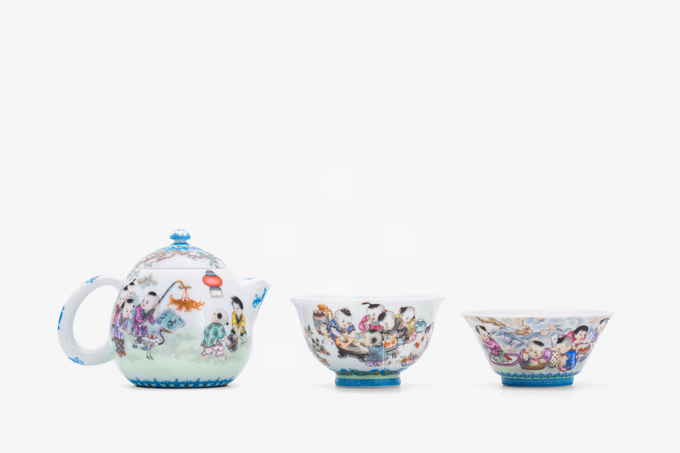 艺林藏珍珐琅料边粉彩童子迎中秋套组